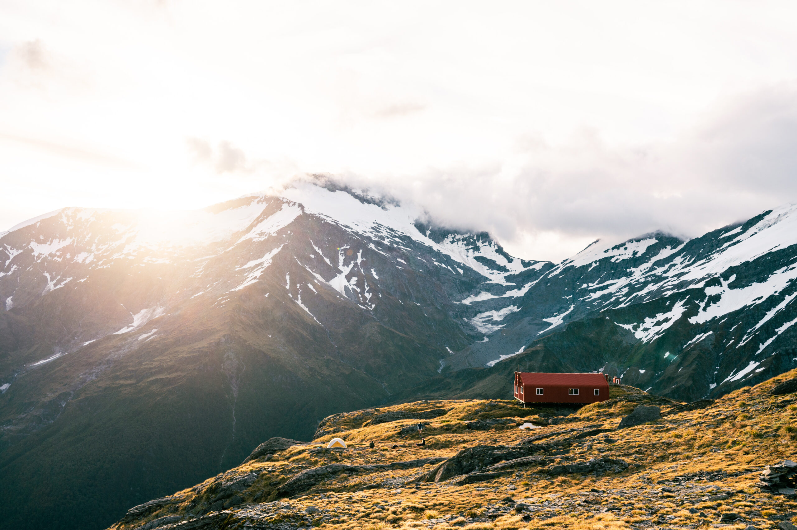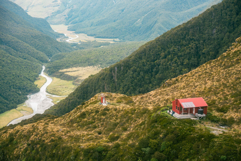 その後は綺麗な稜線を登り切ると突然現れます。France Ridge Hut。