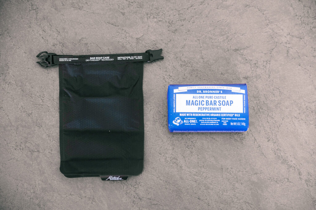 また石鹸を切って必要な分だけ持っていけばさらなる軽量化につながりますね。